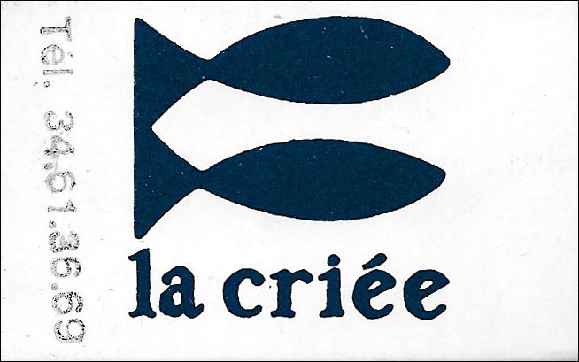 Fruits de mer.Allumettes/Boites d'allumettes.Restaurants.Poissons