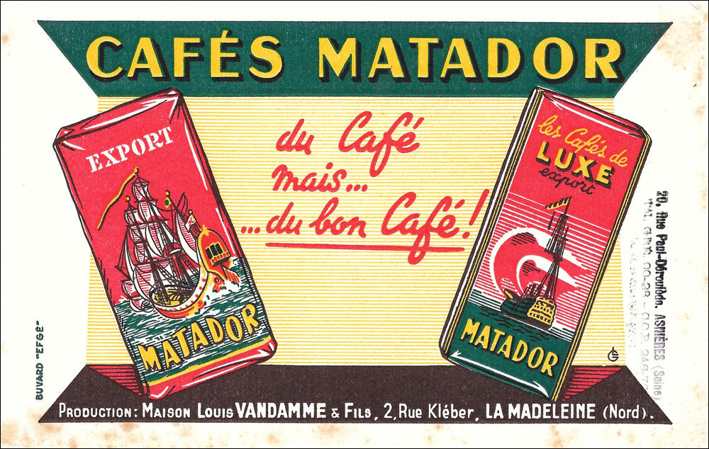 Cafés Matador - Maison Louis Vandamme & Fils - 2, Rue Kléber La Madeleine (Nord) et Asnières (Seine)