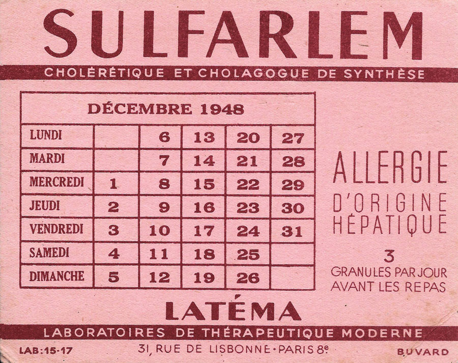 Calendrier Décembre 1948