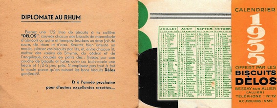 Calendrier 1935 Biscuits Dèlos