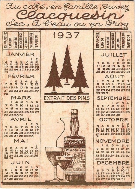 Calendrier 1937 Clacquesin