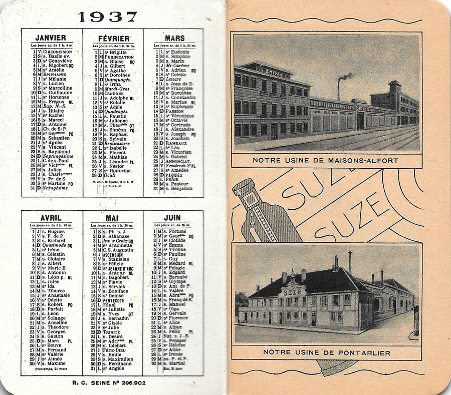 Calendrier 1937 Suze