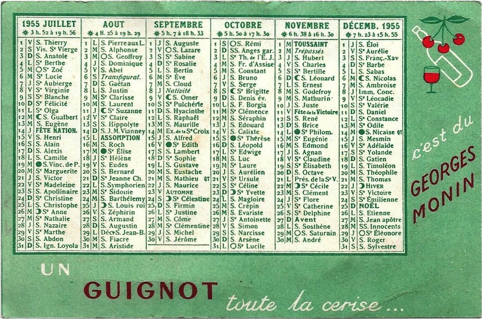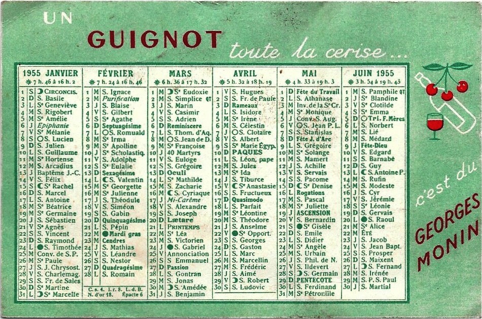 Calendrier 1955 Guignot