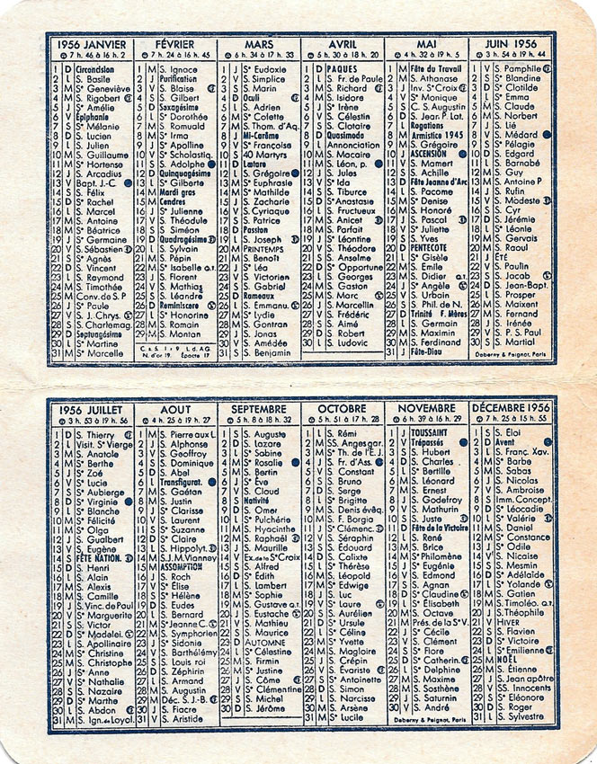 Calendrier 1956 L'Alimentation de l'Aéroport