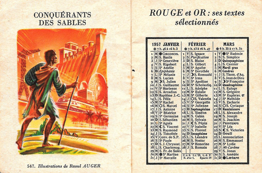 Calendrier 1957 Bibliothèque Rouge et Or