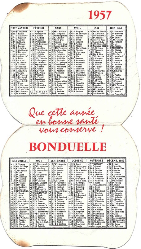 Calendrier 1957 Bonduelle
