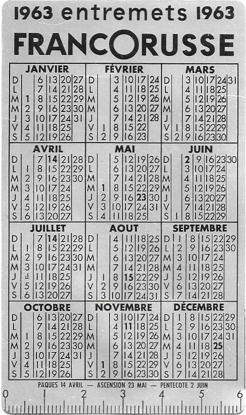 Calendrier 1963 Francorusse