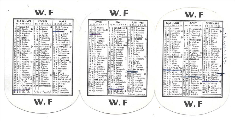 Calendrier 1965 WF