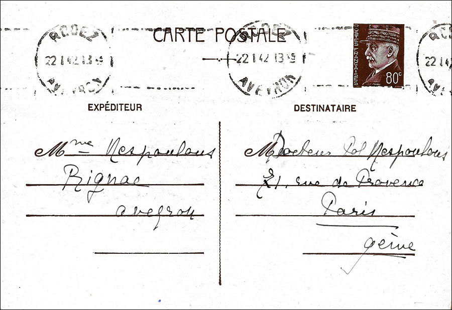 Puis des cartes sur papier glacé à l'effigie du Maréchal sont imprimées car l'encre "sympathique" invisible n'y pénètre pas ce qui simplifie la censure.