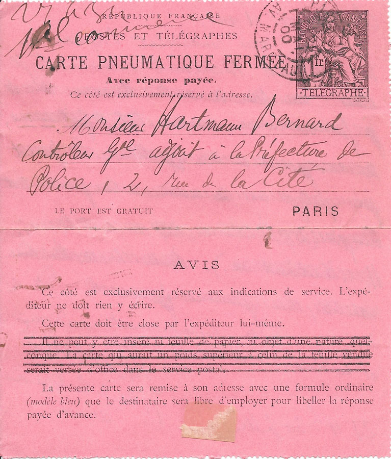 Poste Pneumatique de ParisDomaine