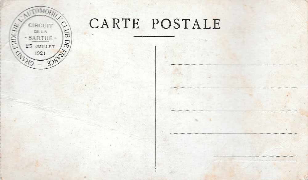 Au verso, Grand Prix Automobile Club de France - Circuit de la Sarthe - 25 Juillet 1921