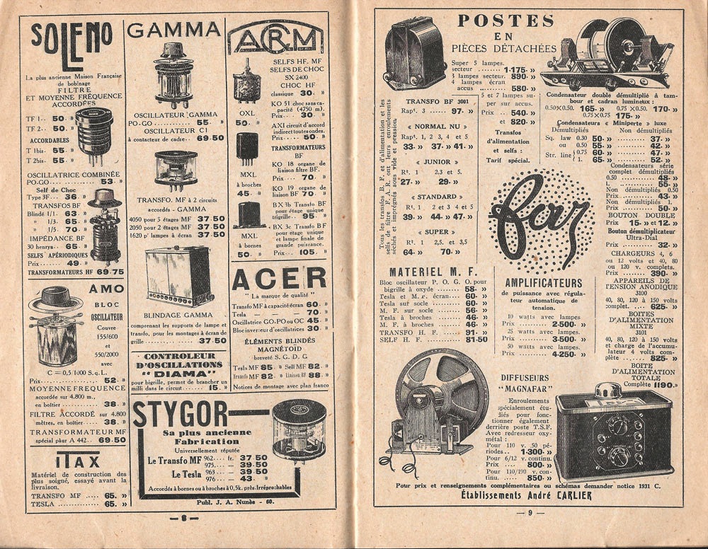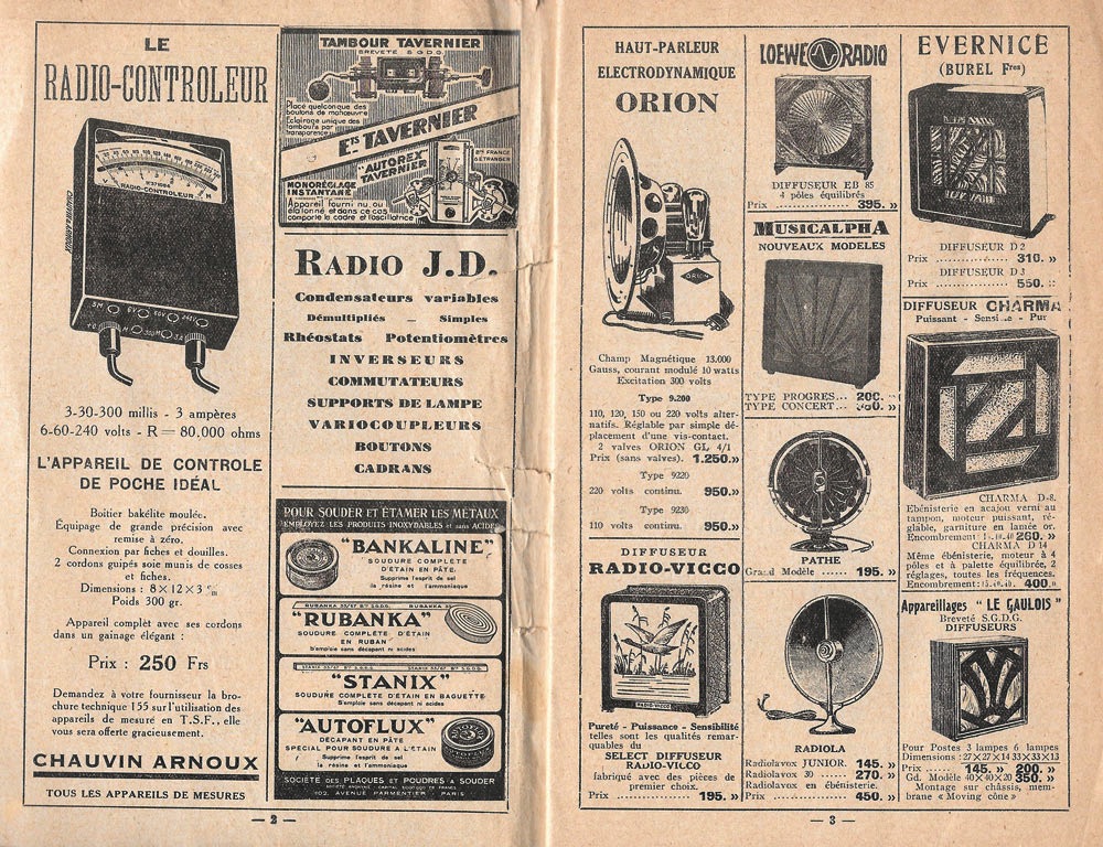 Iillustrations noir et blanc dans le texte reprenant de nombreux modèles de TSF avec le nom et le prix de l'époque.