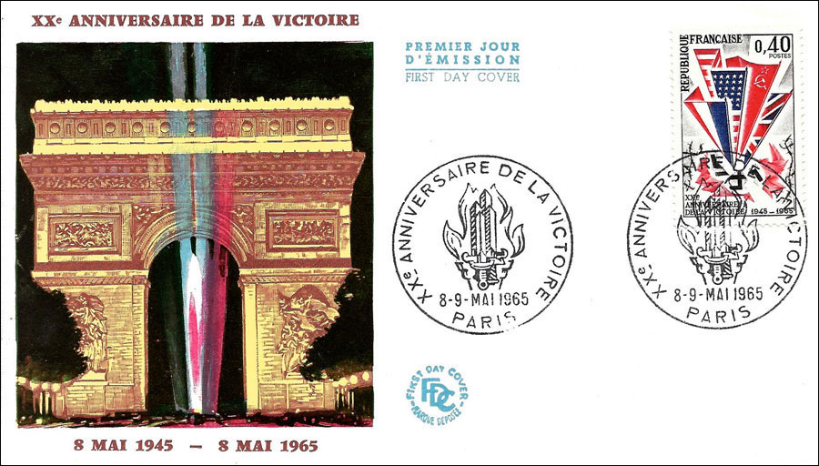 XXe Anniversaire de la Victoire - 8 Mai 1945 / 8 Mai 19658-9 Mai 1965 Paris - Premier JourProvenance : Pruniers en Sologne (Vide-Greniers) - le 18 Mai 2023