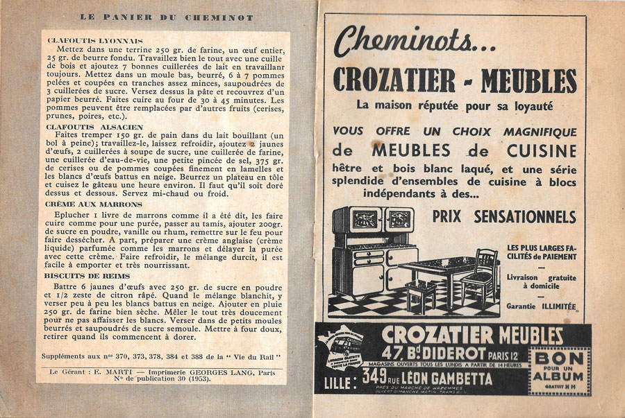 Recettes de cuisine.Transports ferroviaires.Cheminots