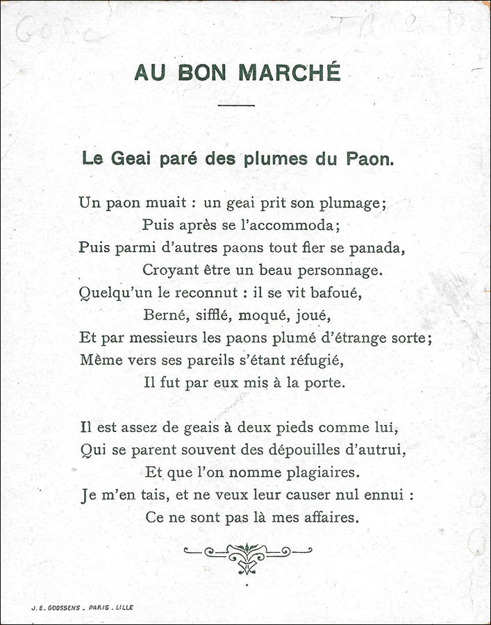 Grands magasins.Proverbes
