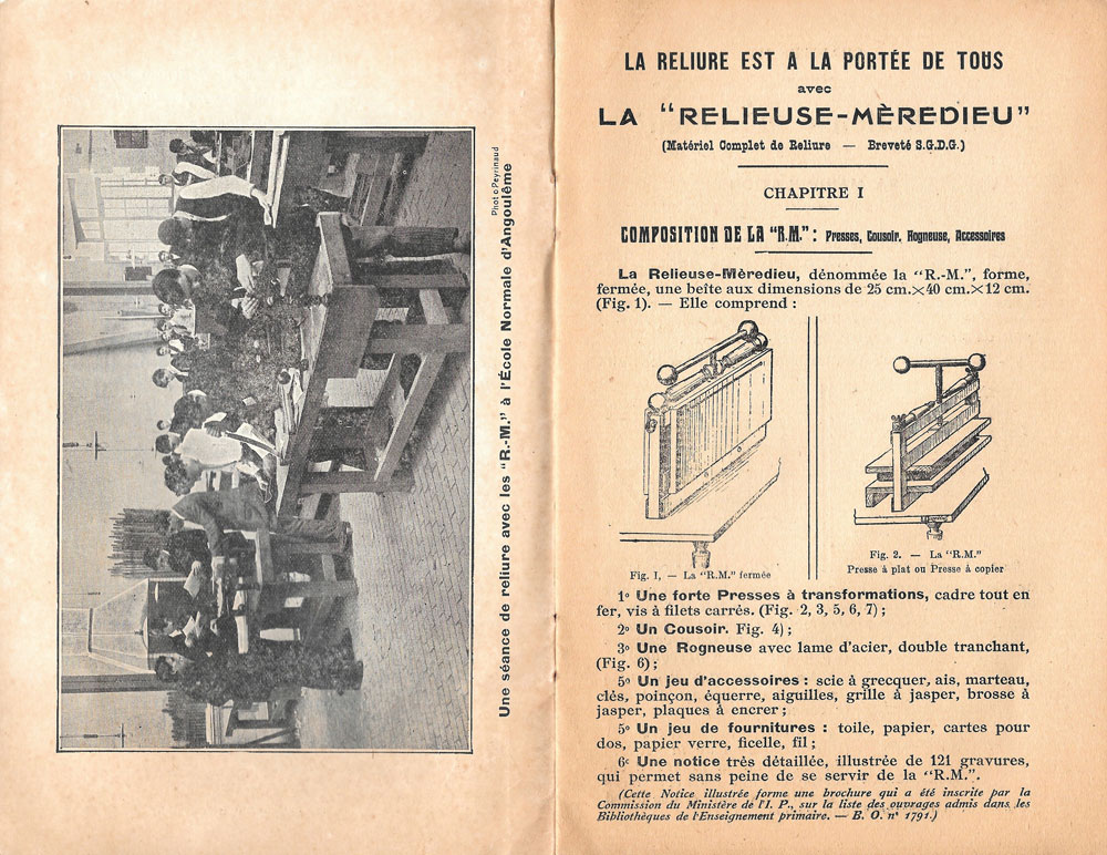 Notice La reliure à la portée de tous avec la Relieuse-Mèredieu, 20 pages intérieures