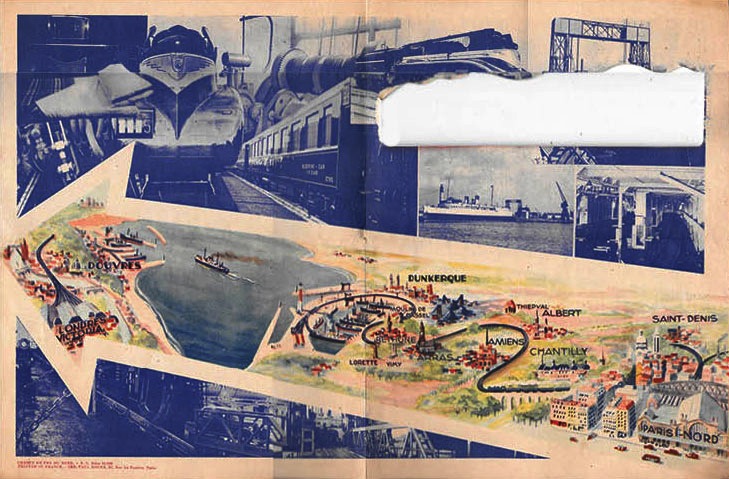 4 pages pliées et repliées, partie ajourée sur la couverture laissant voir une partie du voyage ferroviaire