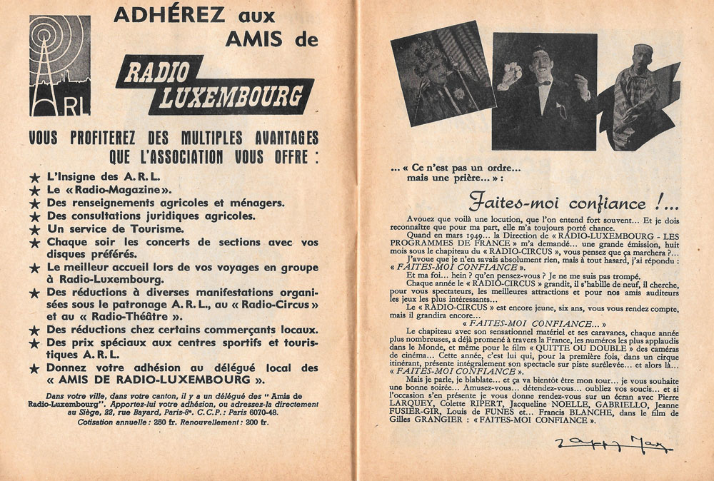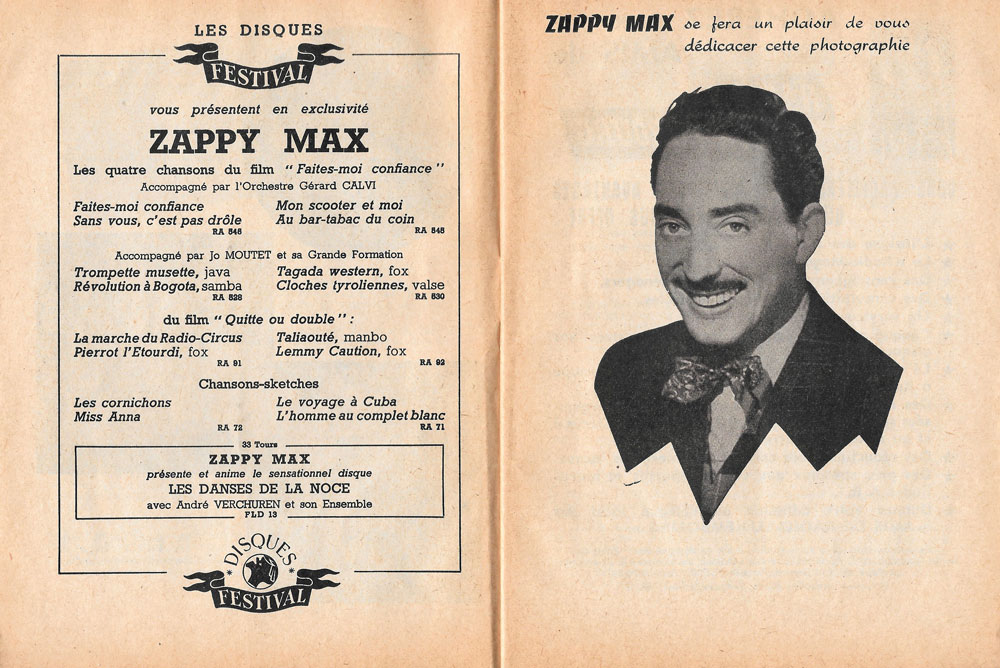 40 pages intérieures - Préface de Jean Cocteau - Présentation du spectacle avec Zappy Max et Radio Luxembourg