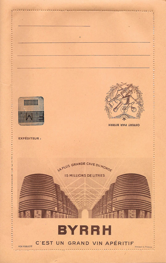 Lettre-enveloppe bénéficiant de la Franchise Militaire ... offert par Byrrh