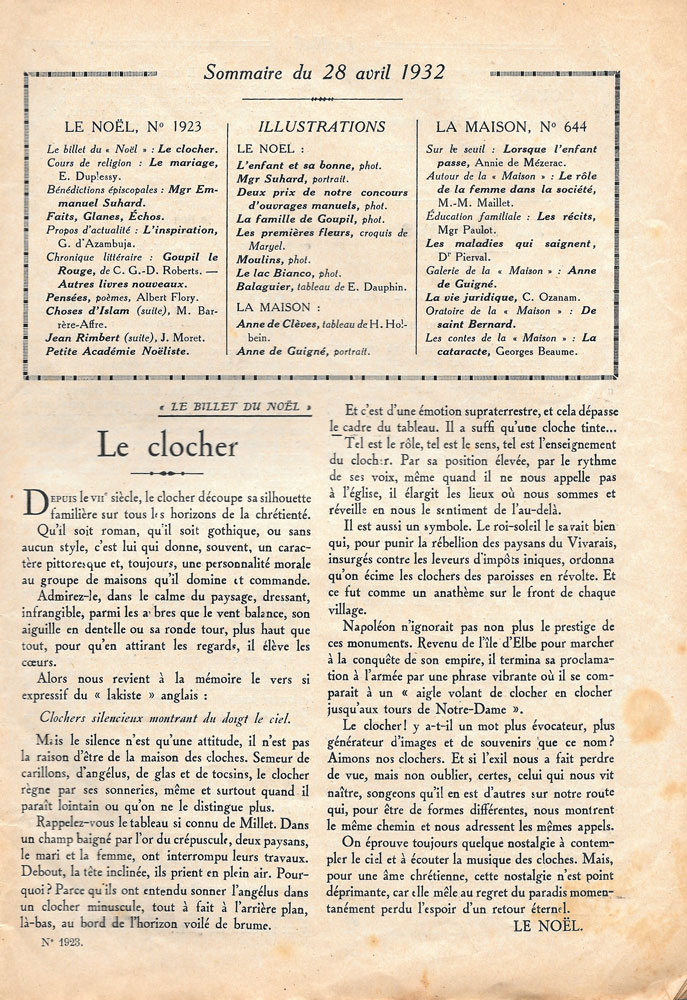 Le Noêl - N°1923 (38e année) - 28 avril 1932 - 36 pages