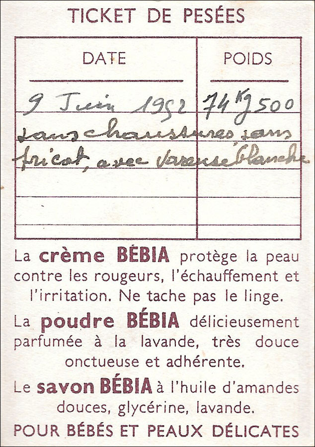 Ticket de pesées Bébia