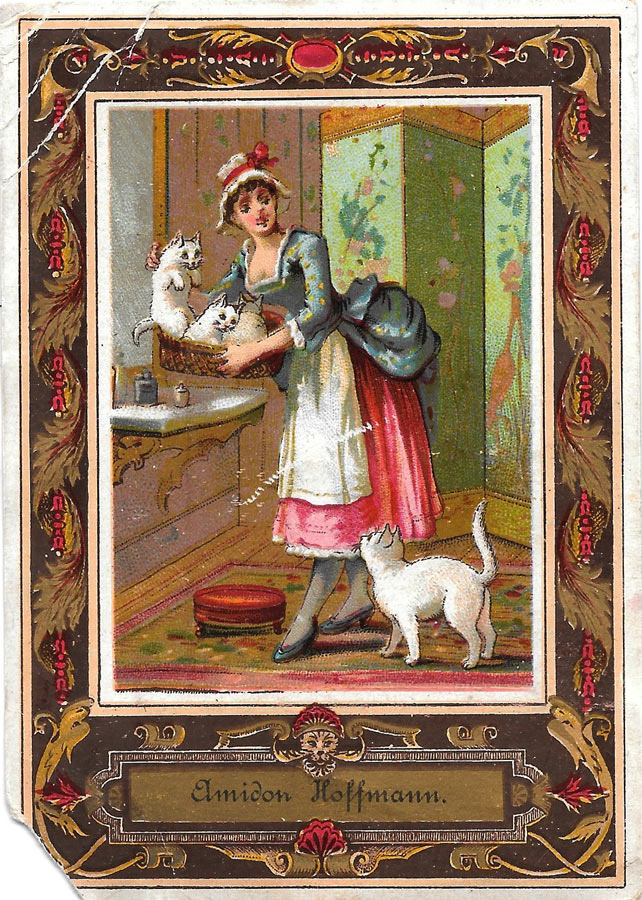 Curieusement, en France la compagnie marseillaise Ferrier lance en 1853 Un gros cube de savon "Le Chat", marque bien active aujourd'hui et l'affiche vintage est rééditée.
