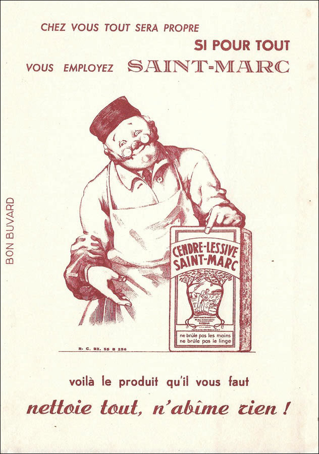 C’est en 1902 que la marque St Marc voit véritablement le jour quand Raoul St Marc, le directeur de l’entreprise, développe une lessive à la résine de Pin des Landes, qu’il nomme « Cendres de Lessive St Marc ».