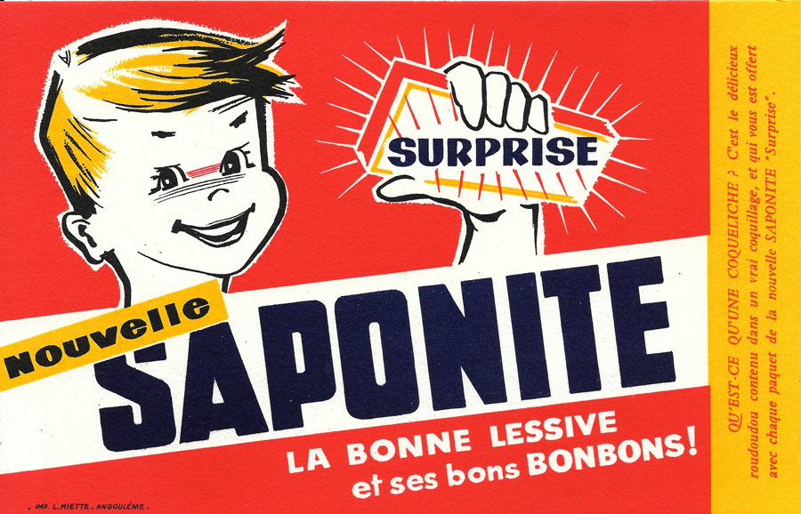 La Saponite est plus connue par son slogan publicitaire Halte là ! Qui vive ? Saponite la bonne lessive, qui avait été créé par le publicitaire Marcel Bleustein-Blanchet pour être diffusé à la radio. Ses publicités étaient aussi déployées sur des nombreux supports (panneaux peints sur les murs, bandeaux sur les bus, objets promotionnels, etc.) dans toute la France. C'est pour cette raison que la Saponite, avec d'autres marques populaires de l'époque, sont mentionnées dans certains romans français pour donner une impression de réalisme, ou bien pour parodier le prétendu style réaliste du nouveau roman (comme dans La vie mode d'emploi de Georges Perec, par exemple).