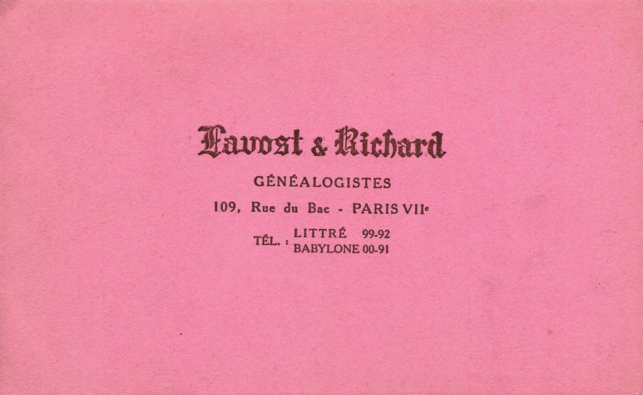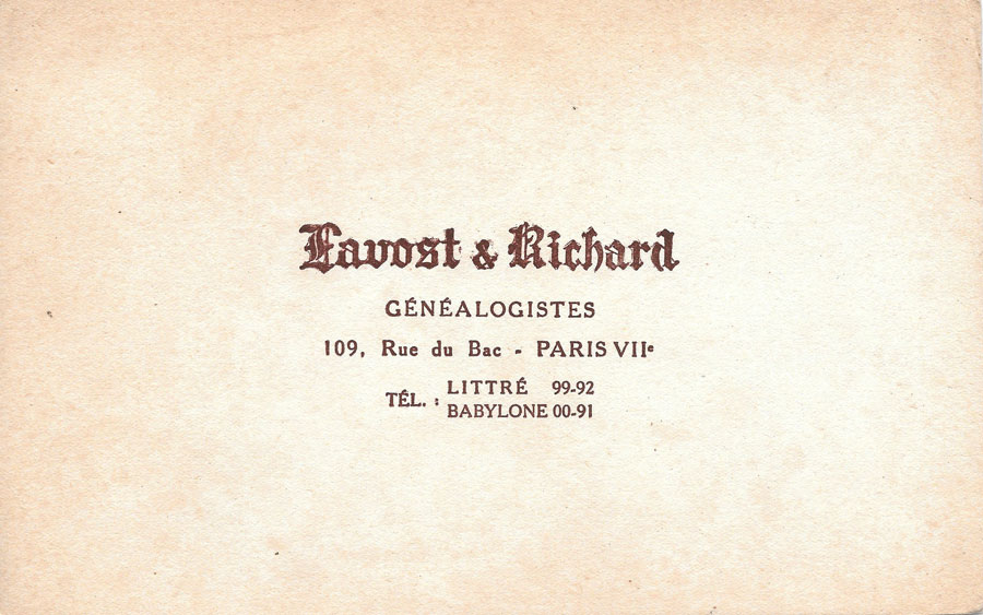 Lavost & Richard Généalogistes, 109 Rue du Bac 75007 Paris