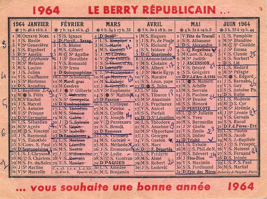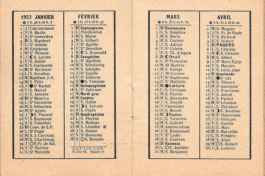 Calendrier 1953 Bibliothèque Rouge et Or
