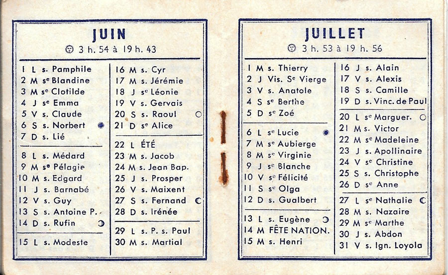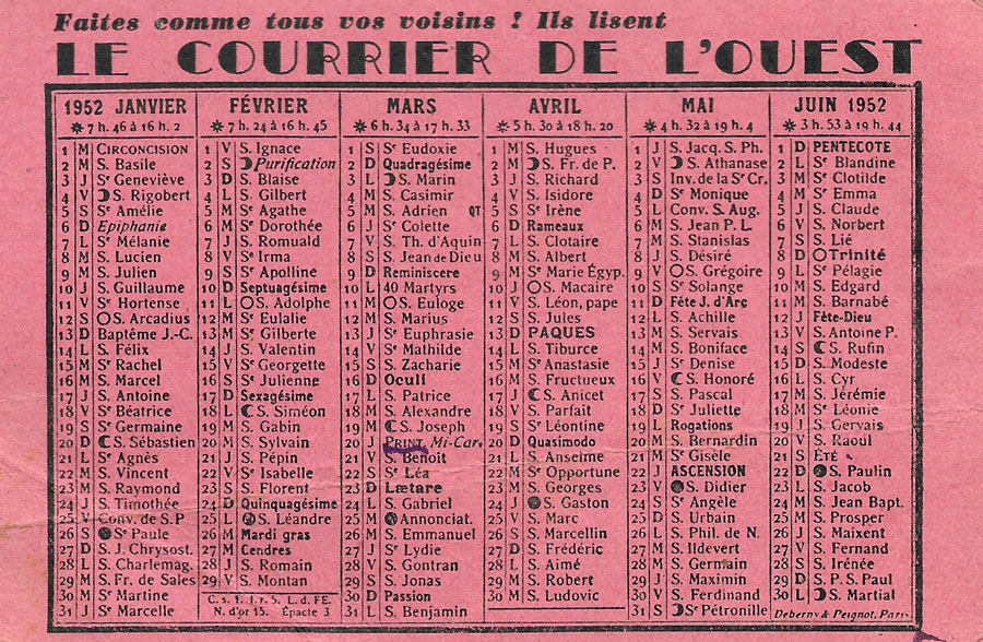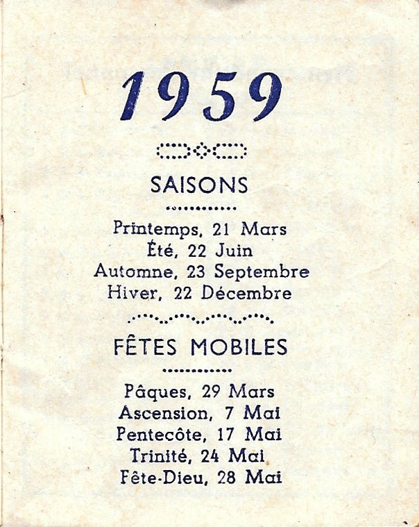 Calendrier 1959