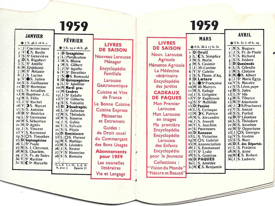 Calendrier 1959 Larousse