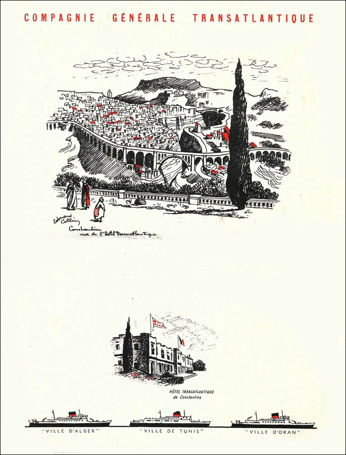Paquebot de la Compagnie Générale Transatlantique particulièrement actif sur les lignes d’Algérie et de Tunisie.