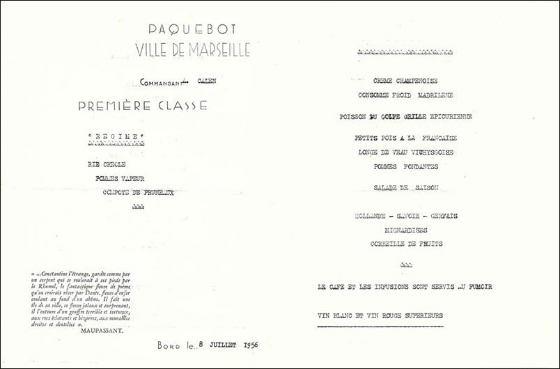 Menu Paquebot Ville de Marseille (01)