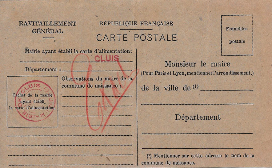 Carte postale Ravitaillement Général