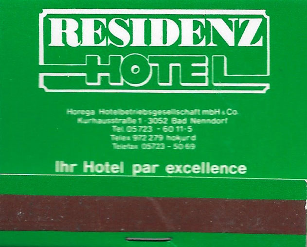 Pochette d'allumettes Residenz Hotel
